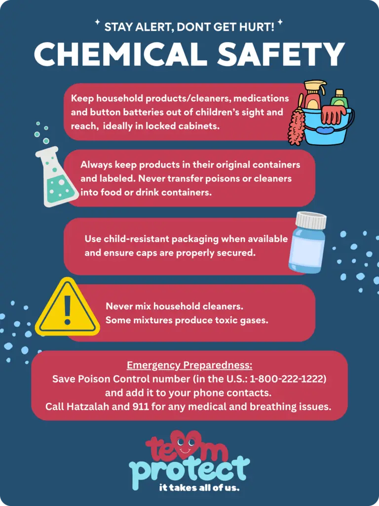 As parents, we don’t always realize how quickly common household products—cleaners, medications, and even items intended for mitzvos, can become life-threatening in the hands of a curious toddler. Exposure to oils, detergents, cleaning products, and other home chemicals remains one of the most common causes of pediatric poisonings, yet much of it is entirely preventable with awareness and safer product placement within our homes.